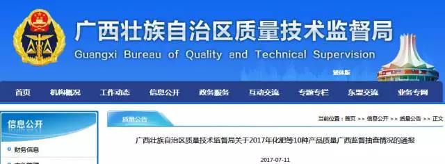 7月11日,廣西壯族自治區(qū)質(zhì)量技術(shù)監(jiān)督局網(wǎng)站發(fā)布了關(guān)于2017年化肥等10種產(chǎn)品質(zhì)量廣西監(jiān)督抽查情況的通報(bào)。 在化肥抽檢中,共抽取全區(qū)88家企業(yè)生產(chǎn)的90批次產(chǎn)品...