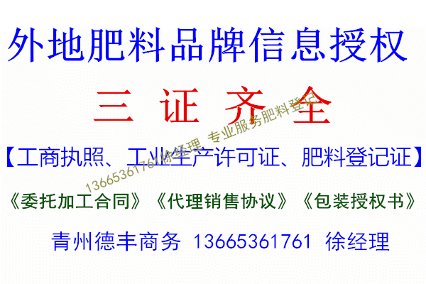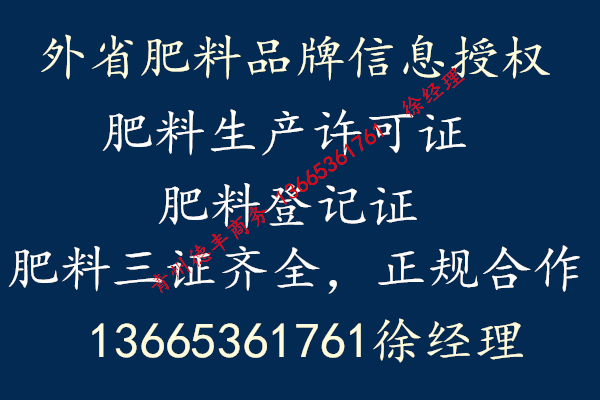 @13665361761專業提供異地肥料品牌授權、出租肥料登記證,肥料登記證到期續展、山東省內生產許可證辦理、農業部菌肥及水溶肥登記證申請、肥料質檢報告及委托檢驗協議、田間小區實驗報告、肥料急性毒理學報告、合格樣品、菌種鑒定報告、肥料化驗員資格證,企業標準辦理、商標注冊及續展、海內外銷售公司注冊、網站建設、網絡推廣及優化、微信公眾號建設及推廣,電話&微信136...