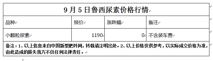 9月5日魯西尿素價格行情