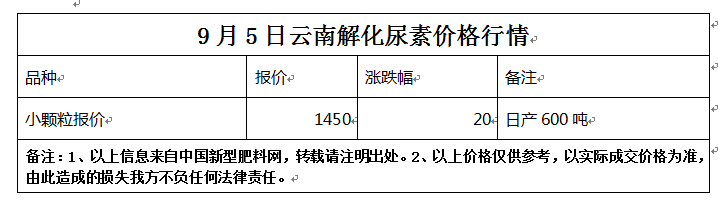 9月5日云南解化尿素價(jià)格行情