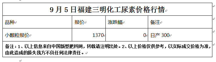 9月5日福建三明化工尿素價格行情