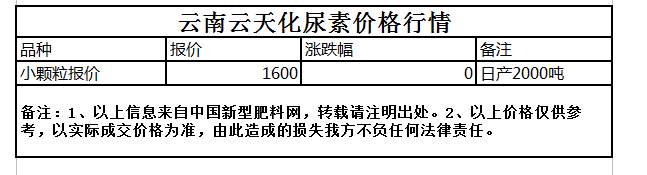 9月7日云南云天化尿素價格行情