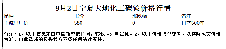 9月2日寧夏大地化工碳銨價(jià)格行情