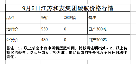 9月5日江蘇和友集團碳銨價格行情