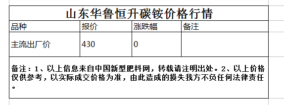 山東華魯恒升碳銨價格行情