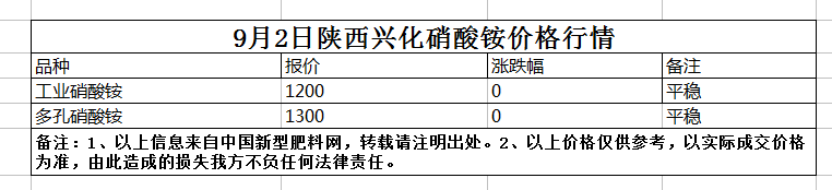 9月2日陜西興化硝酸銨價格行情