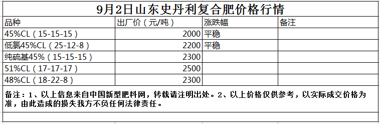 9月2日史丹利復合肥價格行情