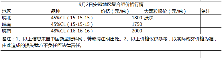9月2日安徽地區(qū)復(fù)合肥價格行情