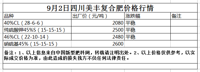 9月2日四川美豐復(fù)合肥價格行情