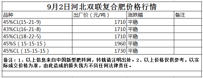 9月2日河北雙聯復合肥價格行情