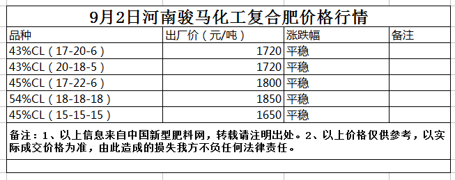 9月2日河南駿馬復合肥價格行情