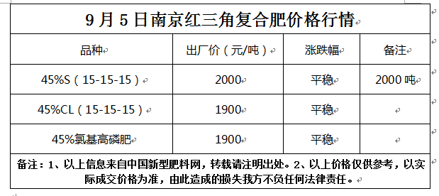 9月5日南京紅三角復(fù)合肥價(jià)格行情