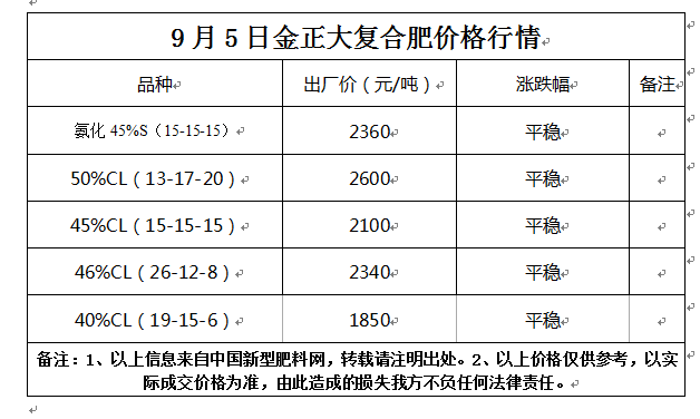 9月5日金正大復合肥價格行情