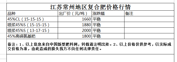江蘇常州地區復合肥價格行情