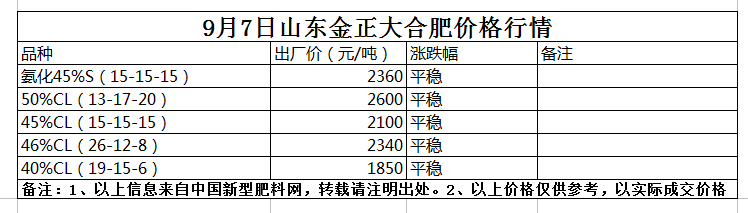9月7日山東金正大合肥價(jià)格行情