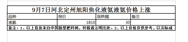 9月7日河北定州旭陽焦化液氨液氨價格上漲