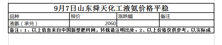 9月7日山東舜天化工液氨價格平穩(wěn)