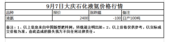 9月7日大慶石化液氨價格行情