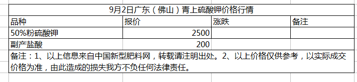 9月2日廣東青上硫酸鉀價格行情