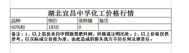 湖北宜昌中孚化工價(jià)格行情