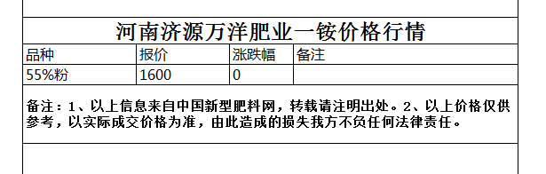 河南濟源萬洋肥業一銨價格行情