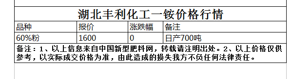 湖北豐利化工一銨價格行情