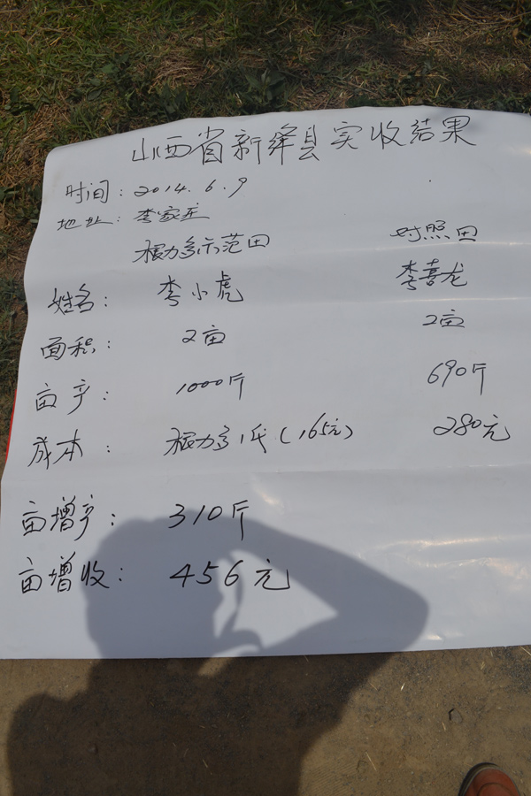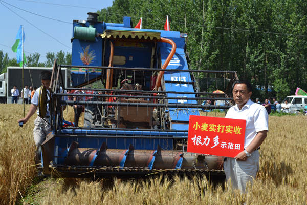 藁城市表靈村小麥單打實收,根力多畝產1280斤,對照地塊1100斤